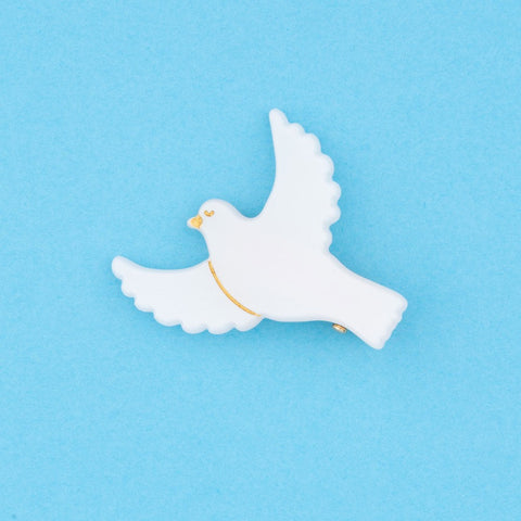 Ajoutez une touche de poésie à votre coiffure avec notre Barrette Colombe. Laissez cette colombe blanche nacré avec des détails dorés maintenir vos mèches rebelles ou ajouter une touche finale adorable à votre chignon.