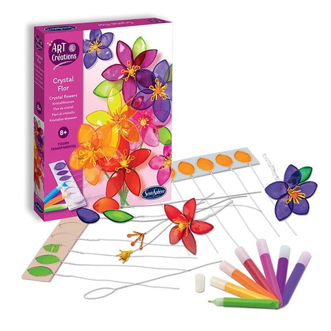 Ce coffret permet de créer 8 fleurs qui semblent être en verre effilé, pourtant elles ne sont faites qu’en peinture vitrail.