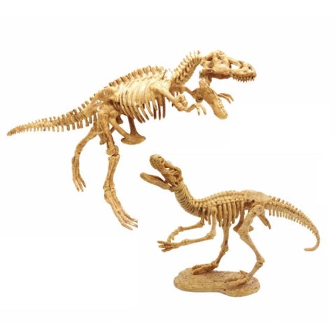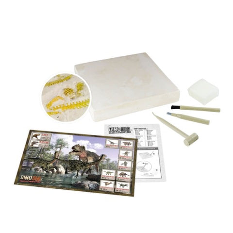Cette boîte contient un bloc de plâtre dans lequel sont dispersés les os de deux dinosaures. Après les avoir déterrés, il faudra reconstituer ces deux dinosaures, et savoir quels sont les os du T-Rex et ceux du raptor.