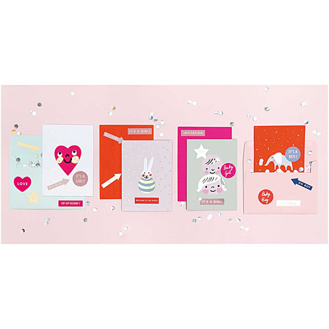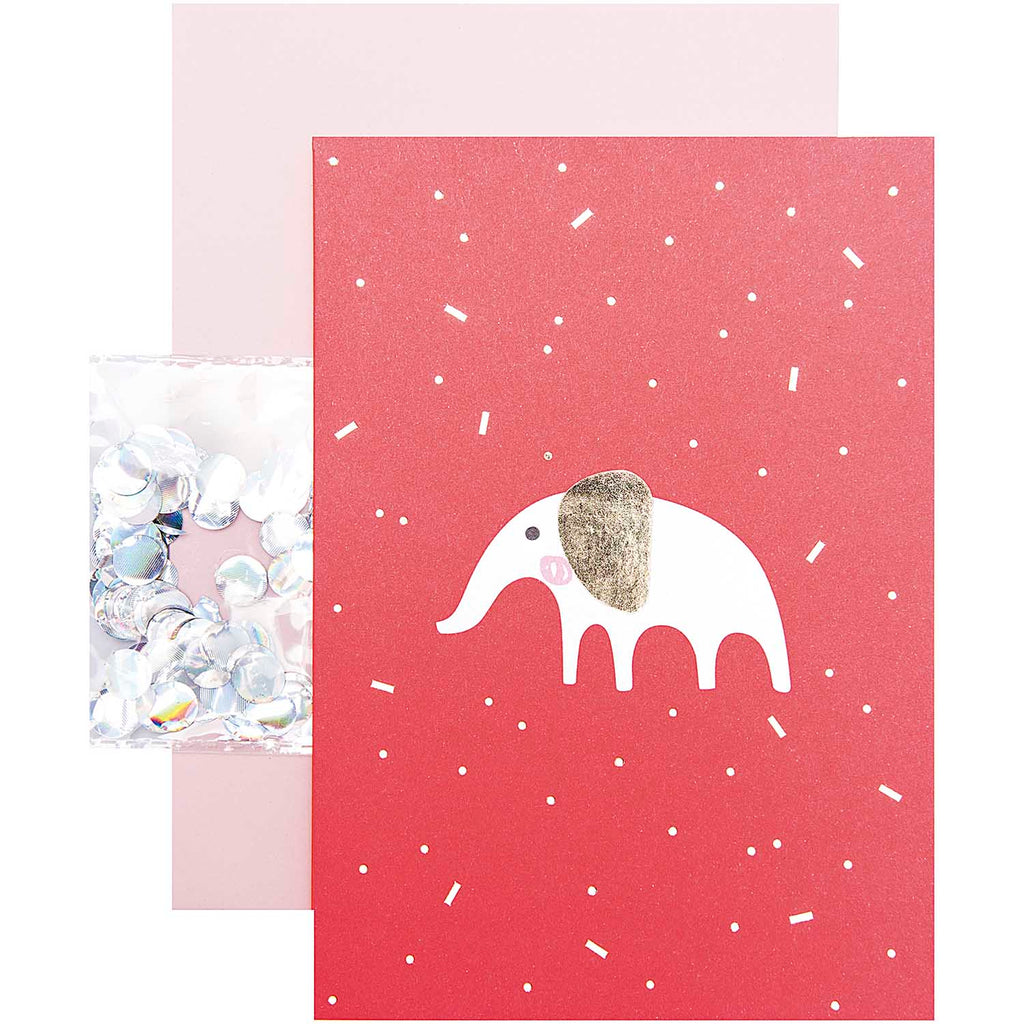 La carte et son enveloppe à customiser avec une planche de stickers pour la personnaliser et des confettis à ajouter avant de ferme l'enveloppe !