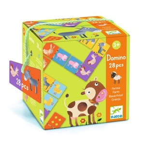 Domino Ferme est un jeu de reconnaissance des images et d’approche des nombres sur le thème des animaux. Le premier joueur qui réussit à placer tous ses dominos gagne.