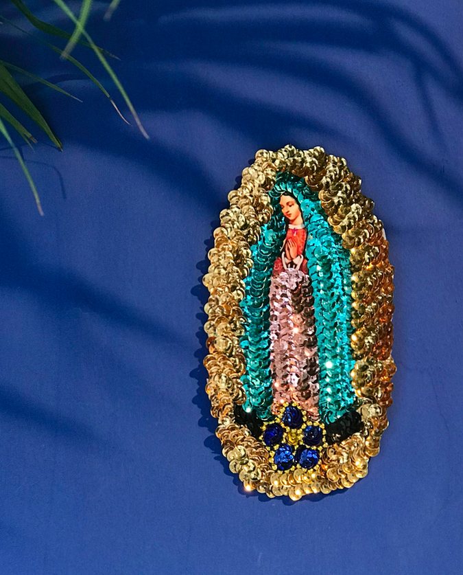 Écusson à coudre ou à accrocher dans votre mur des curiosités, en sequins. Fabriqué au Mexique manuellement. Modèles Tienda Esquipulas