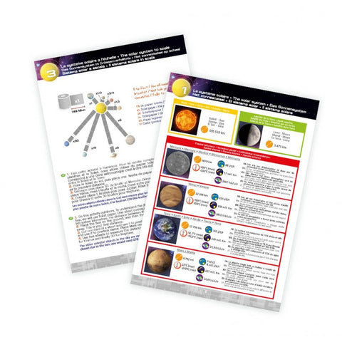 Observe le système solaire et ses 8 planètes qui orbitent autour d'un Soleil central qui s'allume comme une veilleuse, le tout en 35 minutes. Placez la Terre et la Lune pour reproduire les éclipses à l'aide de la lampe fournie.