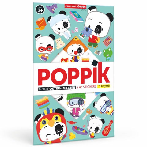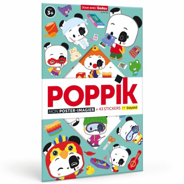 Connaissez-vous Gadou, le petit panda malicieux ? Gadou est curieux et vit chaque jour mille aventures. Tantôt pompier, tantô pirate, lion ou astronaute, il se pose des questions et voit le monde comme un grand terrain d’exploration. Voici un grand poster éducatif à compléter avec des stickers repositionnables, montrant Gadou dans plein de situations différentes. L’enfant colle sur le poster 43 autocollants de grande taille, en se repérant grâce aux silhouettes. Un jeu éducatif original pour apprendre en s’amusant, illustré par Mr Tan, inventeur du personnage de Mortèle Adèle.