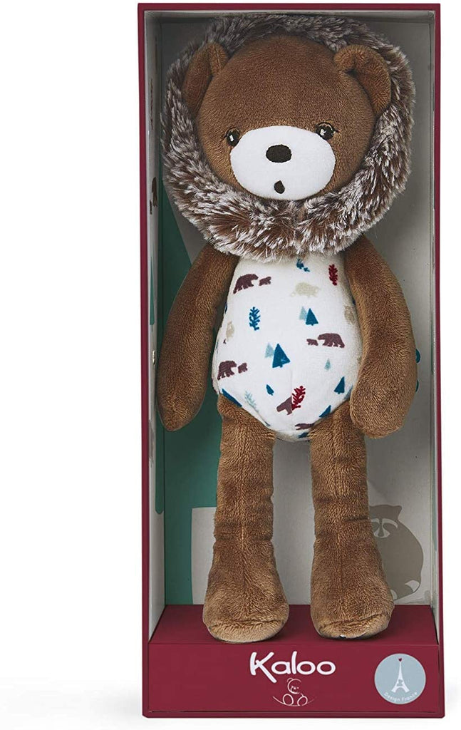 Ourson de 40 cm paré contre le froid grâce à son manteau à capuche en fourrure ultra douce et chaleureuse. Il tient son bébé dans les bras. Gaston est le compagnon idéal des tout-petits. Ses grands bras et ses grandes jambes seront très faciles à attraper par les petites mains de bébé pour le réconforter. Son imprimé FILOO by KALOO est une signature délicate et tendance qui colore cette collection ! Présenté dans une très belle boîte cadeau imprimée avec le motif de la gamme (17,5 x 11 x 43 cm)