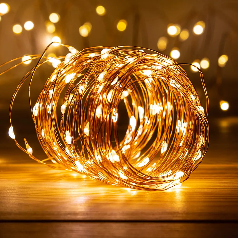 Donnez une touche lumineuse et romantique à votre décoration avec notre Guirlande Micro-Led Cuivre 20 m et ses 200 LEDs! Idéale pour décorer votre table de fête, votre chevet ou votre buffet, elle s'adaptera à toutes vos envies et à tous vos styles ! Enroulée ou déroulée, décorez comme bon vous semble. Et avec une prise secteur incluse et un interrupteur on/off, la mise en place sera un jeu d'enfant ! Brillant, n'est-ce pas ?