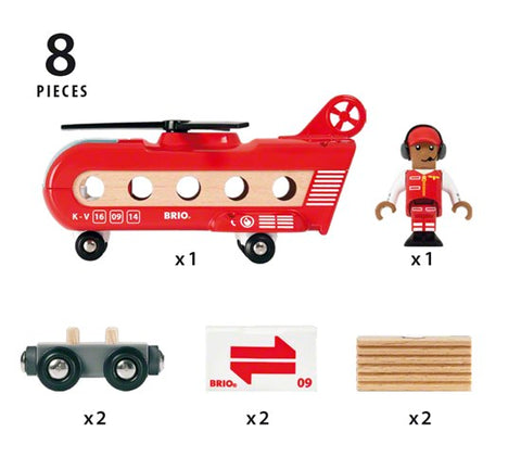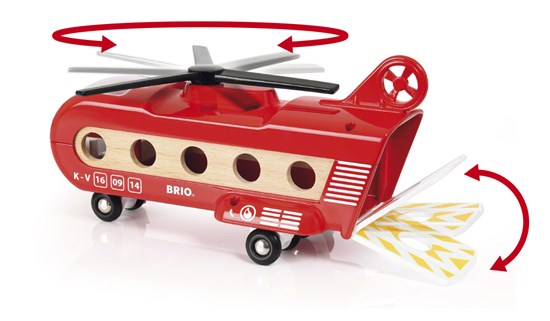 Voler en hélicoptère est simplement génial. Derrière le pilote, dans l'hélicoptère cargo, la soute est prête à transporter son chargement. Vous pouvez même y placer deux wagons chargés à bloc ! Une fois que tout est bien en place, faites tourner les pales de votre hélicoptère BRIO, décollez et survolez votre BRIO World.