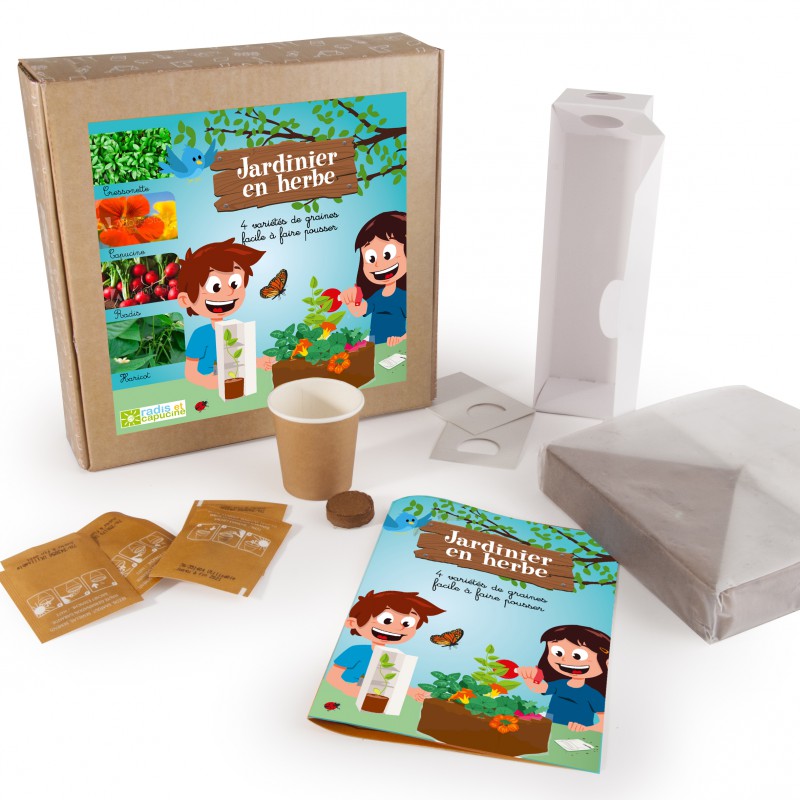 Vous souhaitez intéresser votre enfant aux joies du jardinage. Voici un coffret complet pour commencer tout en s'amusant, sans en mettre partout.