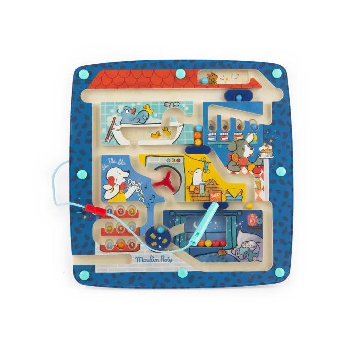 A l'aide d'un crayon aimanté, déplace les billes colorées dans les bonnes cases en faisant tourner les éléments magnétiques pour trouver ton chemin. Ce labyrinthe est idéal pour apprendre à compter et découvrir les couleurs tout en s'amusant!