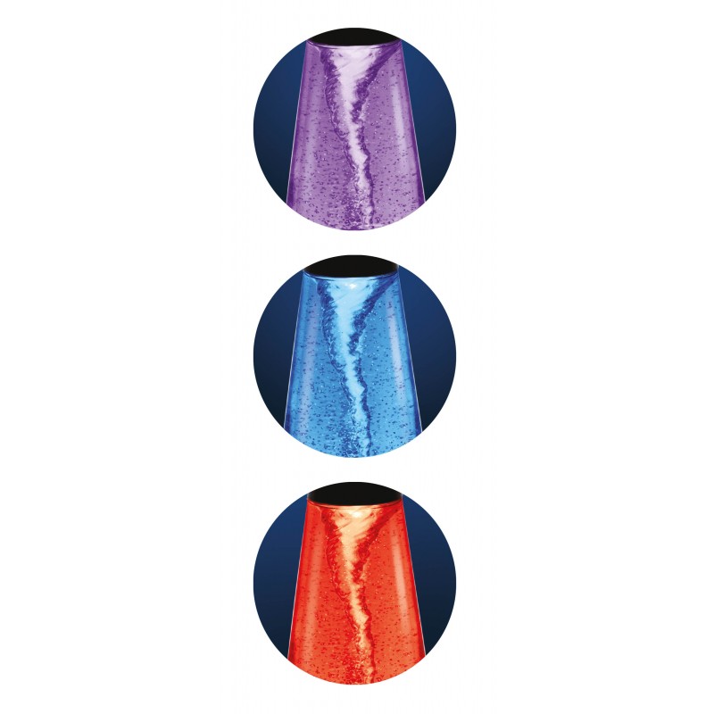 Une magistrale lampe tornade de 24 cm à illuminer dans la chambre. Verse l'eau et ajoute les somptueuses paillettes. La lampe offre une LED qui change de couleurs, représentant ainsi une tornade sous-marine. Découvre 5 expériences extraordinaires avec l'eau grâce à la notice !