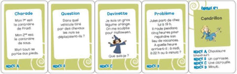 Un jeu de cartes, un gros dé en mousse et 33 énigmes à découvrir ! Pour résoudre une énigme, c'est très simple, il faut être le premier à découvrir les 4 indices qui se cachent derrière une devinette, une charade, un rébus ou un jeu de logique. Mais attention, le dé en mousse rythme le jeu et ne permet pas toujours à tout le monde de voir les indices ! Faites preuve de réflexion, de déduction et d'un peu de tactique pour trouver un maximum d'énigmes !