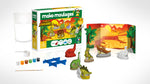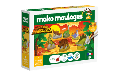 Adopte une famille de dinosaures, en moulant et en décorant ton propre clan de dinos ! Avec le coffret créatif « Le monde des dinosaures », monte ton décor 3D et laisse ton imagination donner vie à tes créations ! Contenu : 6 moules en latex (diplodocus, tyrannosaure, triceratops, brontosaure, stegosaure, pterodactyle), 1 sachet zippé refermable de 800g de plâtre, 6 pots de peinture 5 ml : noir, vert, blanc, bleu, marron, orange. 8 croisillons, 1 pinceau, 1 notice de jeu et 1 décor de jeu 3D