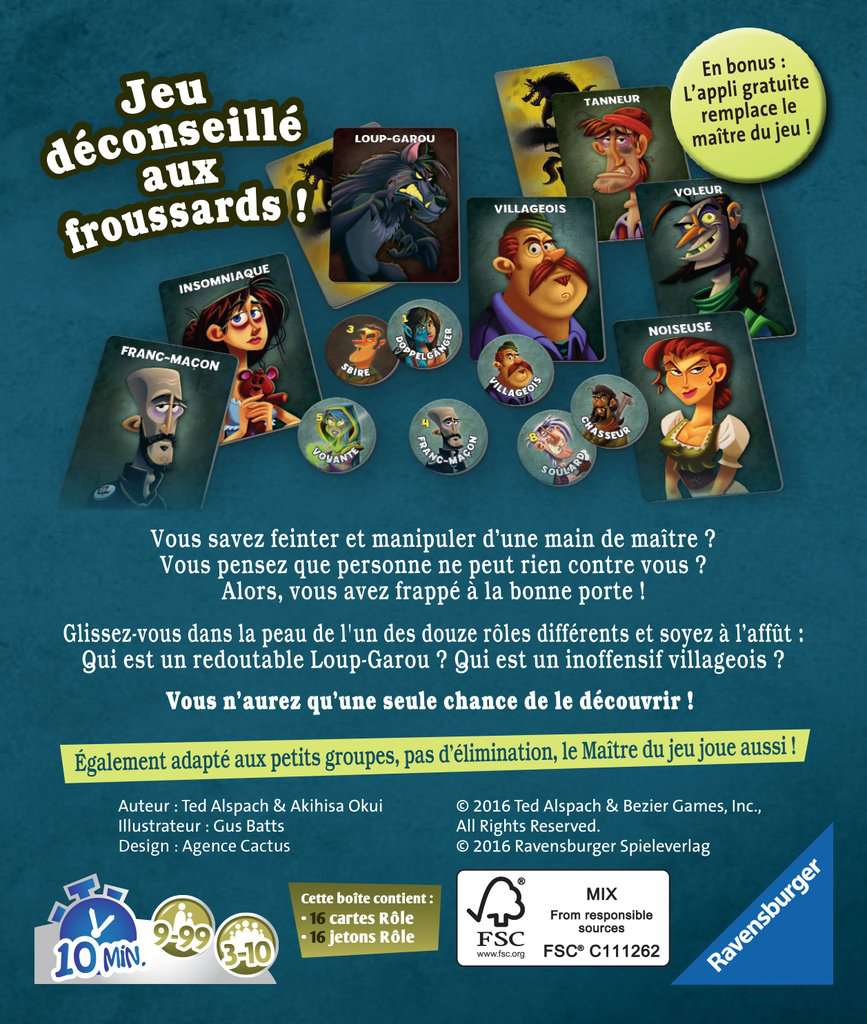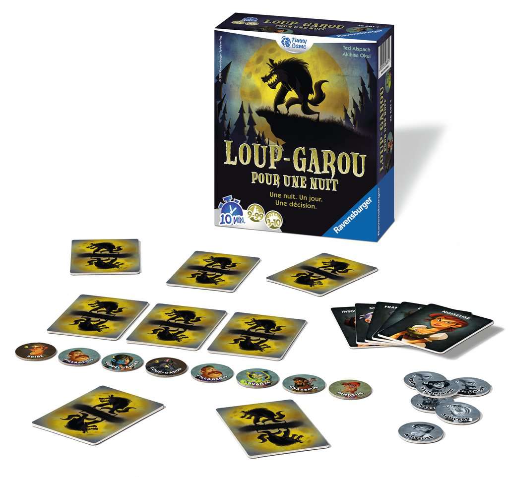 C'est la nuit. Des créatures inquiétantes se cachent dans l'ombre. Mais heureusement, le soleil va bientôt se lever et l'on verra ce que le jour nous réserve. "Loup-garou pour une nuit" est un jeu de rôle rapide dans lequel il est question de bluff, de ruse, de dissimulation et de tromperie. Qui sont les dangereux loups-garous ? La voyante peut-elle apporter la lumière dans l'obscurité ? Le jeu se déroule avec trois à dix joueurs.
