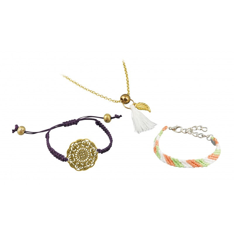 Transforme-toi en princesse avec Ma jolie trousse! Avec ses deux palettes de fards à paupières dont une pailletée, sa palette de blush et son gloss brillant, tu peux te maquiller et te créer 3 bijoux uniques, suivant la notice incluse. Puis range tes trésors dans le petit pochon et emmène-les partout avec toi! Alors, prête à briller?