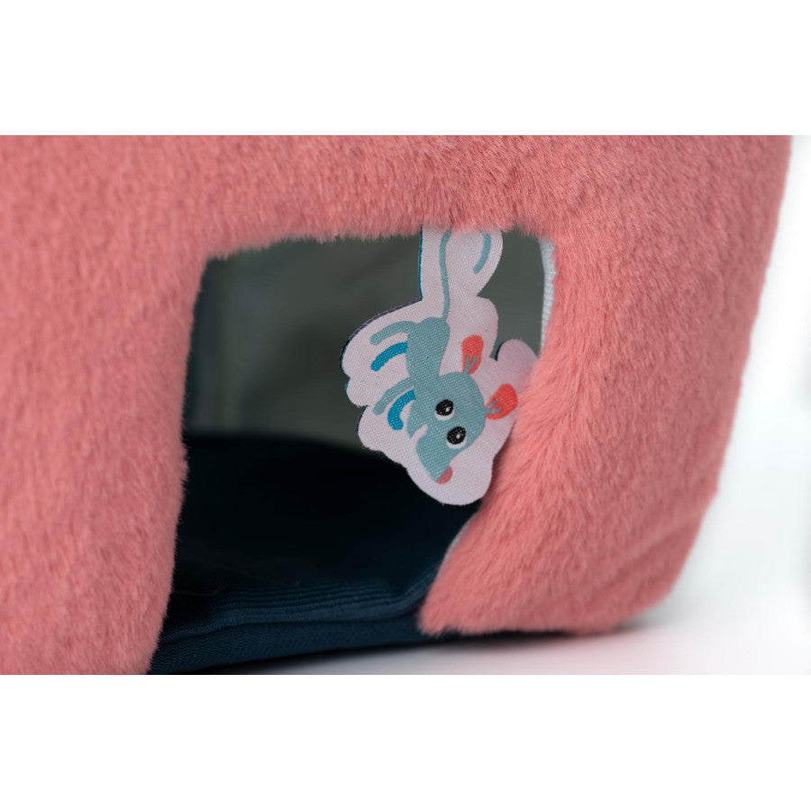 Dans son format 16x16x23 cm, cette maison en tissu et personnages en peluche sont lavables en machine à 30°.