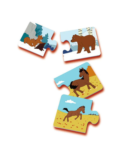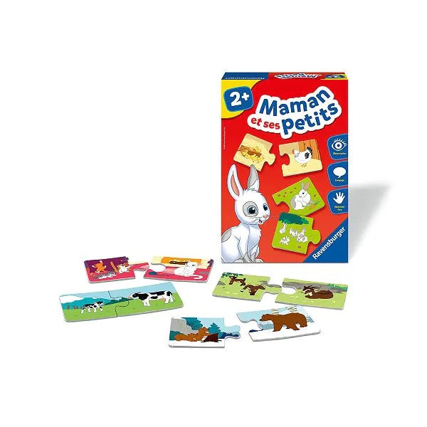 Les enfants sont particulièrement fascinés par les animaux. Le jeu "Maman et ses petits" leur propose de découvrir les animaux dans leur environnement et d'apprendre leur nom. Dans cet univers de jeu très tendre, il faut retrouver les petits de 12 mamans. Grâce aux pièces de puzzle autocorrectives, l'enfant joue à réunir les familles en toute simplicité et peut vérifier lui-même s'il a correctement associé les images.