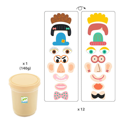 Une première activité de pâte à modeler très facile pour les enfants, dès 18 mois. L'enfant étale, roule, utilise la pâte à modeler pour créer des formes de différentes tailles. Il complète ses créations avec les pièces en bois illustrées recto-verso pour qu'elles prennent soudain la forme de drôles de personnages. Une fois terminé, il retire les pièces de la pâte et il peut recommencer autant de fois qu'il le souhaite.