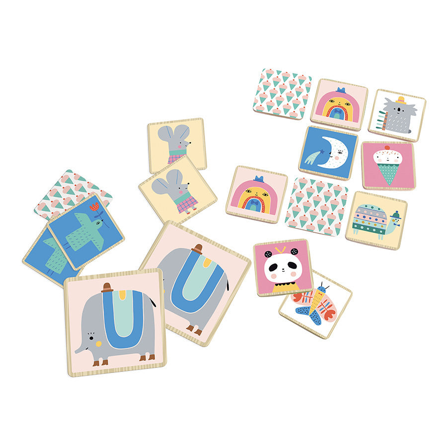 Tout mimi ce joli mémo de 48 pièces en bois - illustré par Suzy Ultman - dans un univers kawai-chic doux et pétillant. Livré dans sa boite en bois décorée.