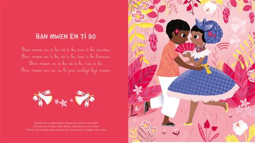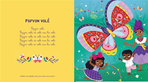 Avec ses puces sonores musicales, ce recueil est unique. Sur chaque page, l'enfant recherche dans l'illustration le petit bouton qui déclenchera la musique. Ce sont des grands classiques de la chanson antillaise qu'on découvre au fil des pages : " Papiyon vole " ; " Ba mwen en ti bo " ;