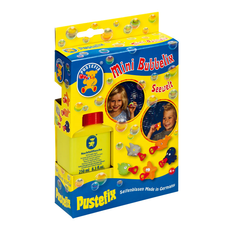 Un kit de 5 petits animaux marins qu'il faut nourrir de produit à bulles ! Une bouteille de 250ml est prévue, ainsi que le petit récipient. Une fois le bec dans le produit, il faut presser l'animal pour obtenir de jolies bulles !