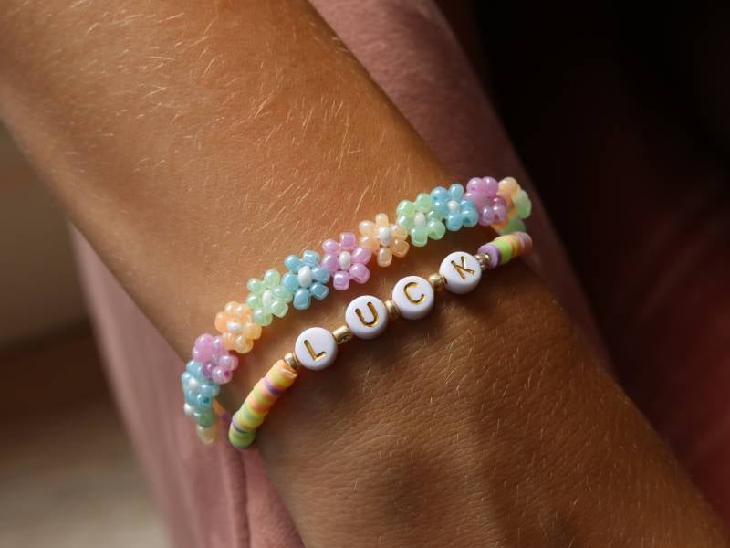 Ce kit bijou Luck va vous séduire avec ses deux bracelets à réaliser aux couleurs pastels. La Petite Epicerie a imaginé ce kit bijou Luck rien que pour vous ! Facile à réaliser, vous retrouverez à l'intérieur tout le matériel dont vous avez besoin pour créer deux superbes bracelets colorés aux différentes perles. Perles heishi, perles de rocailles et perles lettres composeront vos deux bracelets faits par vos soins !