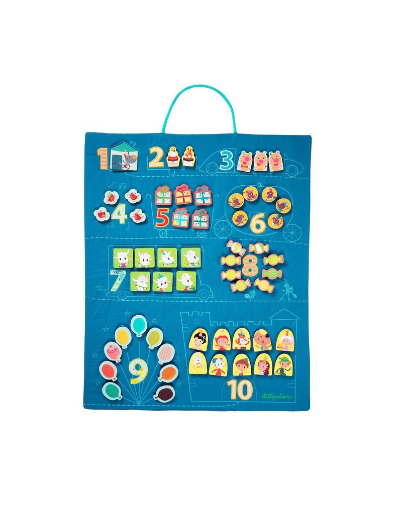 Découvrez la panneau j'apprends à compter de Lilliputiens, un jeu d'éveil ludique et éducatif pour les enfants à partir de 3 ans, pour les aider à appréhender les chiffres jusqu'à 10.