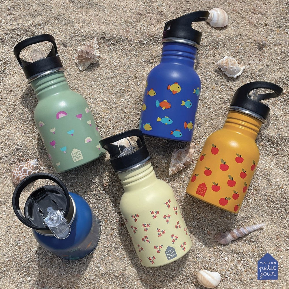 Cette gourde en métal est résistante et grâce à sa taille, elle est adaptée aux petites mains. Le bouchon à dévisser permet de remplir la gourde rapidement et facilement. Écologique et réutilisable, elle peut contenir jusqu’à 350 ml de votre boisson préférée. Elle est aussi est dotée d'une paille intégrée qui se déplie et se replie pour le transport. L'embout pour boire est ainsi toujours bien propre. Pratique !