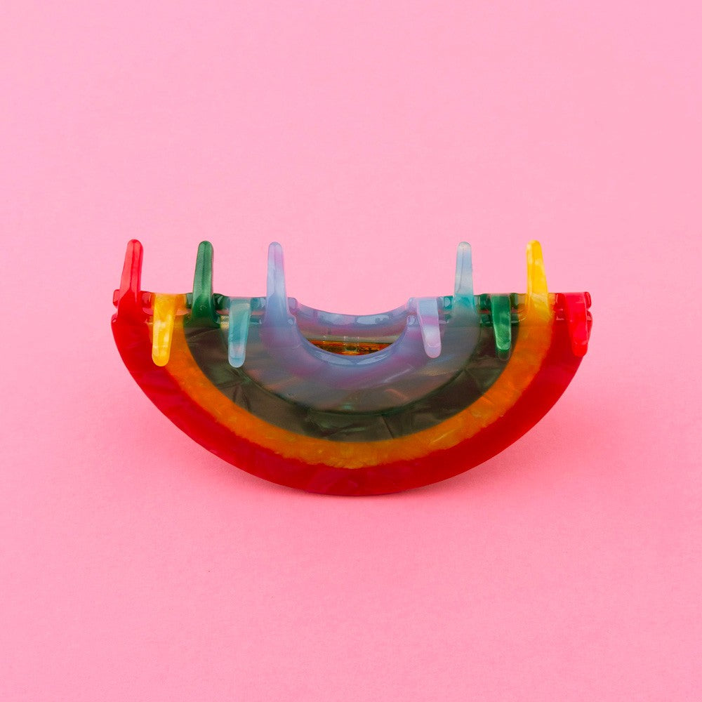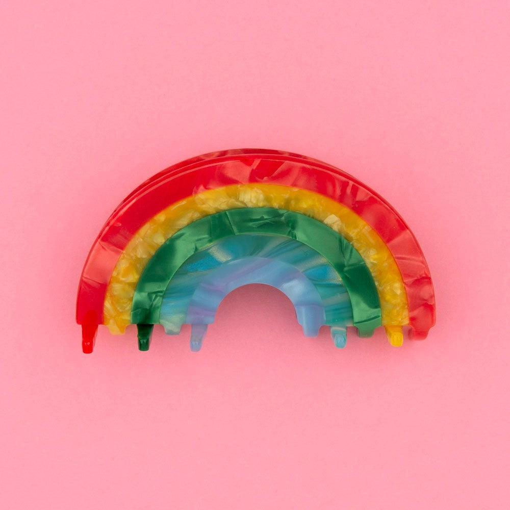 Quoi de mieux qu’un magnifique arc-en-ciel nacré pour des coiffures multicolores ultra good vibes ? On ne se lasse jamais de les admirer dans le ciel (ni de les poster sur insta), les voici dans nos cheveux pour notre plus grand bonheur. Une pince arc-en-ciel dans de jolis tons rouges, jaunes, verts, bleus et violets pour des coiffures toujours plus originales.