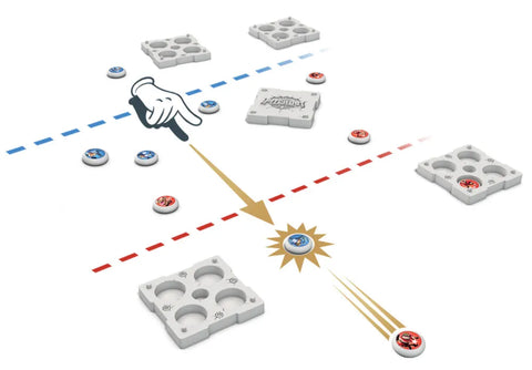 Dès qu'un pion quitte le terrain de jeu, il est éliminé. Un joueur perd la partie si son capitaine quitte le terrain ou s'il est seul. En plus de la pichenette, chaque pion a un pouvoir d'activation.