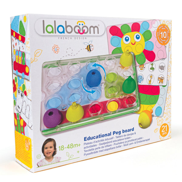 Cette planche d'activités propose aux petits de développer leurs capacités mentales et manuelles grâce aux perles et aux différentes cartes d'activités illustrées : memory, jeu des couleurs, etc. Le plateau sert également de base de construction pour jouer avec les perles Lalaboom. Plus de 30 cartes supplémentairesgratuites à imprimer sont disponibles sur le site Lalaboom, pour accompagner votre enfant sur la durée !