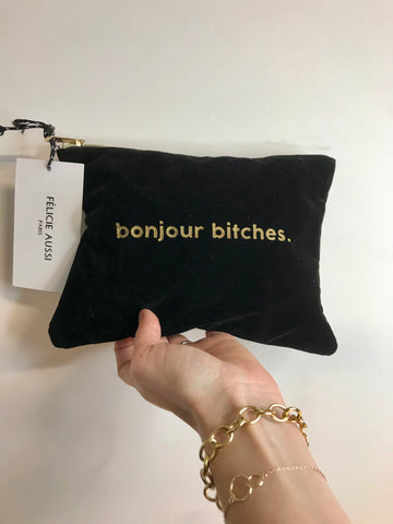 Une jolie pochette en velour noir, imprimée finement en lettres dorées d'un message doux !