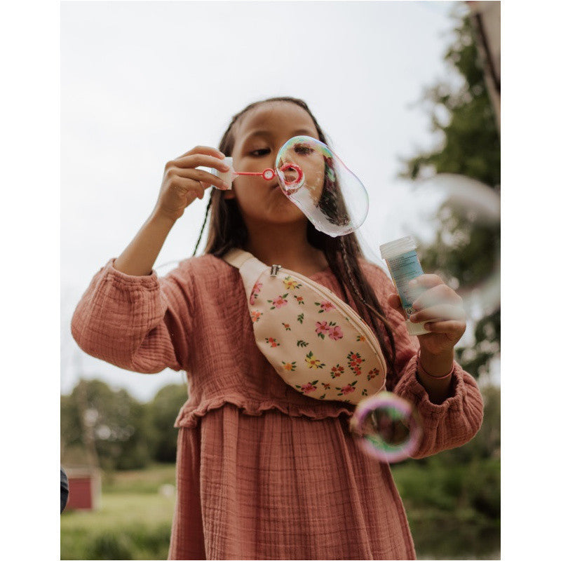 Cette magnifique banane existe en 2 coloris différents, une en bleu et l’autre en rose. Elle est ultra pratique ! Son look est moderne et s’adapte parfaitement aux enfants grâce sa sangle colorée ajustable pour un porté bandoulière ou à la taille.