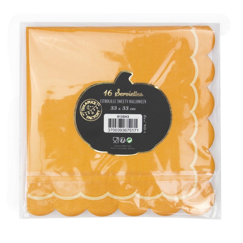 16 serviettes orange citrouille pour décorer tes tables de petites sorcières ! 🎃✨
