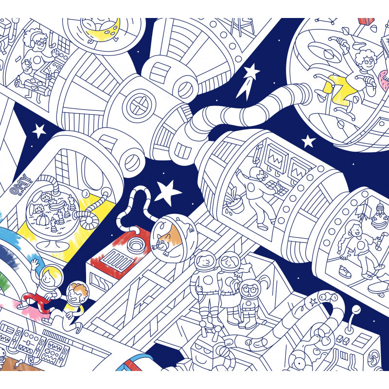 Un espace artistique sans limites pour jouer et colorier seul ou à plusieurs, à déplier au sol, à accrocher au mur.