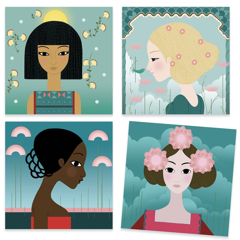 Un coffret de tampons inédit où l'enfant compose des motifs pour décorer tenues et chevelures de ces princesses du monde. Il associe les motifs et les positionne avec précision grâce aux tampons transparents qui permettent de toujours voir sa création. Au fil de la réalisation, les jeunes filles se parent d'ornements subtils et raffinés.