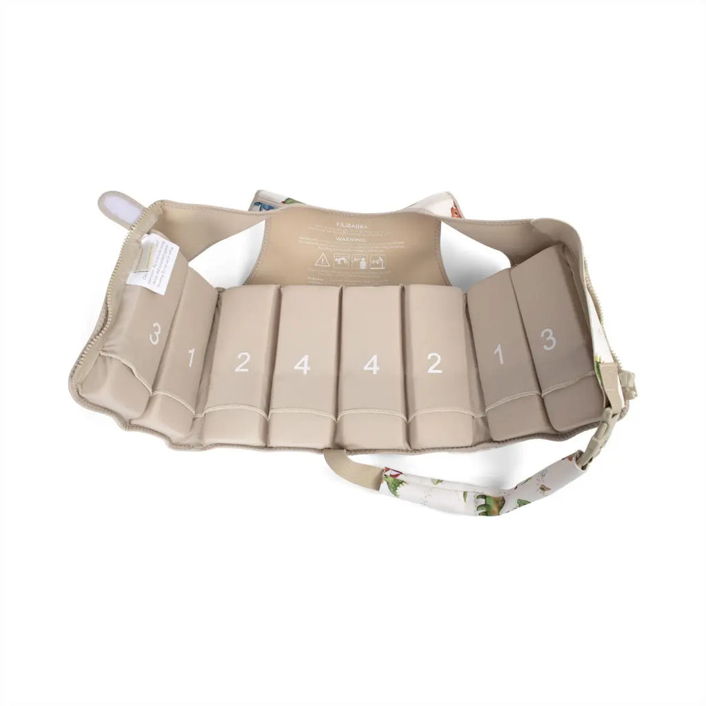 Découvrez le Gilet de bain Dino Beach, parfait pour accompagner les premiers pas dans l'eau en toute sécurité. Avec une protection UV 50+ et un maintien doux grâce aux mousses amovibles, votre enfant pourra évoluer dans l'eau en toute confiance.
